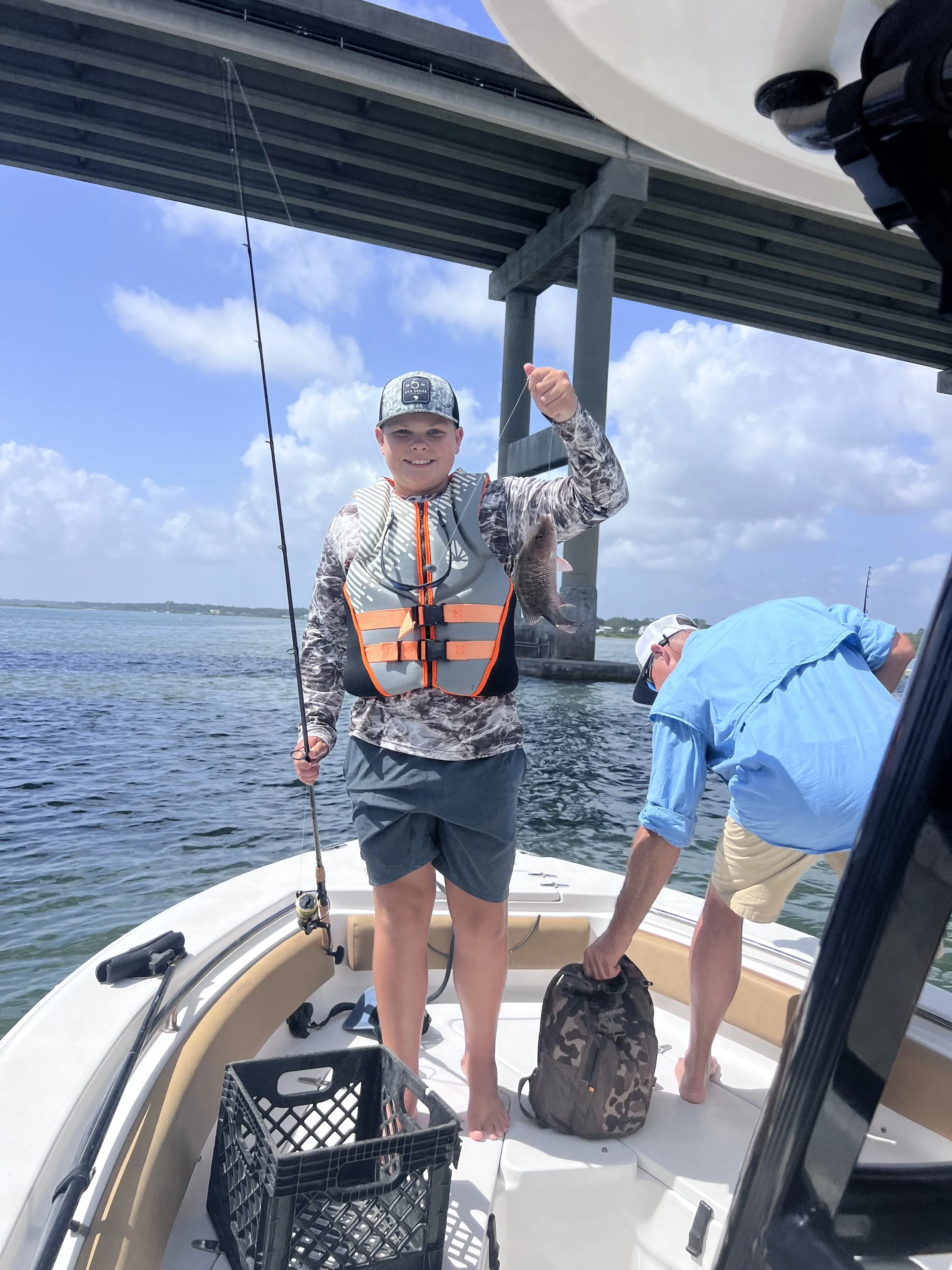 Our boat is equipped with plenty of shade, seating, and safety gear, and our experienced captain knows how to keep things fun and stress-free for anglers young and old.